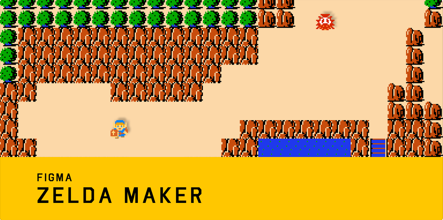 Based on the beloved game, The Legend of Zelda, the Zelda Maker plugin allows you to design your own Zelda worlds and play in them. You can also play right away with this example world, imitating Figma’s 7th floor office in 8-bit. To play an existing world, like the one above, select it and run the plugin in the same file. To make a new world, create a new Frame and drag in the Components from the example world.