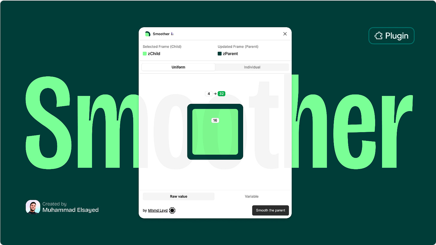 If you’re looking to create visually harmonious nested designs, Smoother can help by automatically calculating perfect radius relationships between parent and child frames. It uses accurate formulas to for automatic radius calculation, offers real-time preview of after states and handles both uniform and individual (mixed) radius calculations. The flexible modes mean you can choose to apply uniform radius to all corners of an object, or to have an individual radius for each corner.
