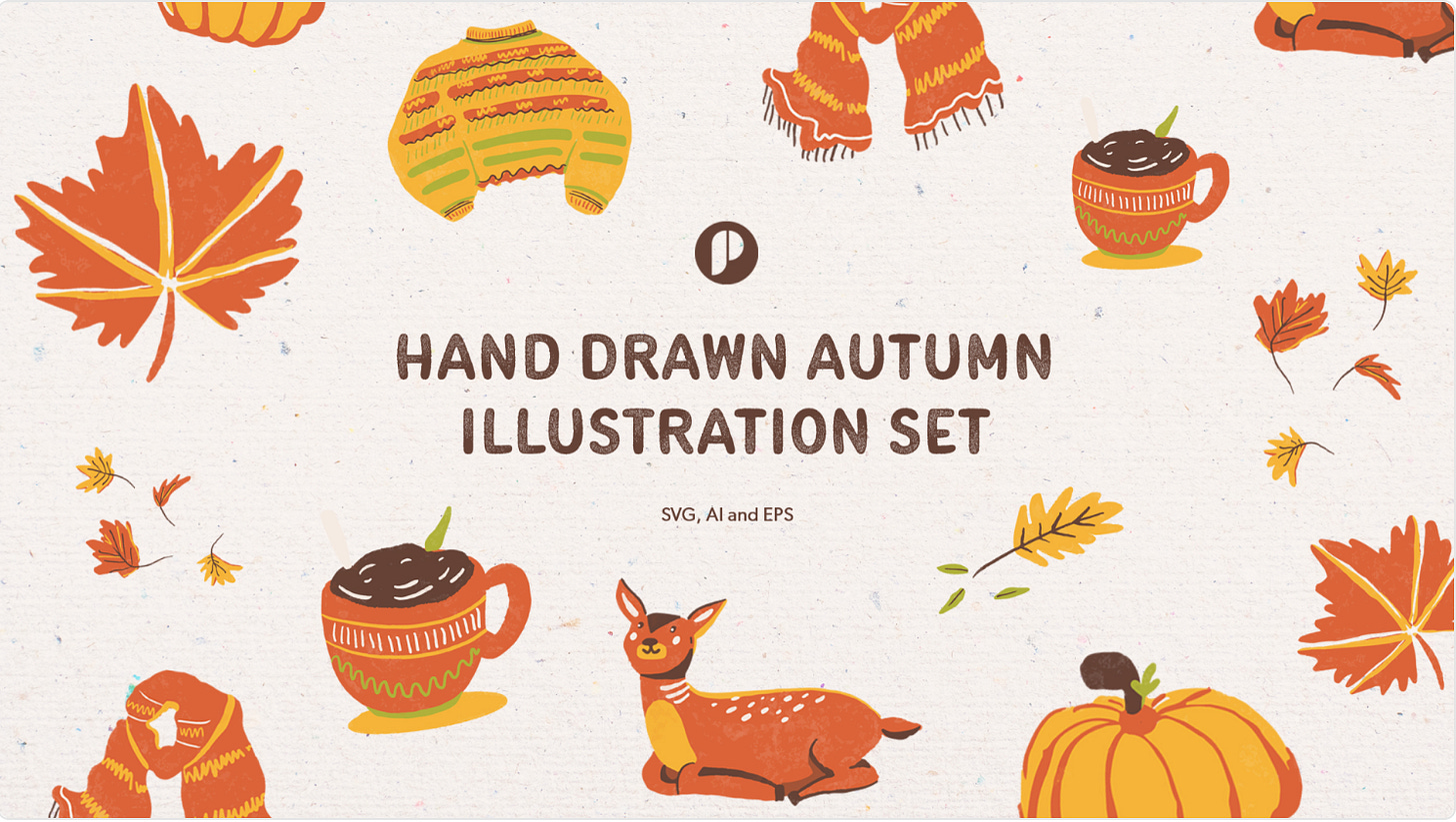Bring cozy fall vibes straight into your designs with this playful Autumn Illustration Set. From iconic maple leaves to pumpkins, mushrooms, scarves, and even pumpkin spice lattes, the collection captures everything we love about sweater weather. It’s perfect for crafting greeting cards, seasonal banners, or festive flyers that feel warm and welcoming.
