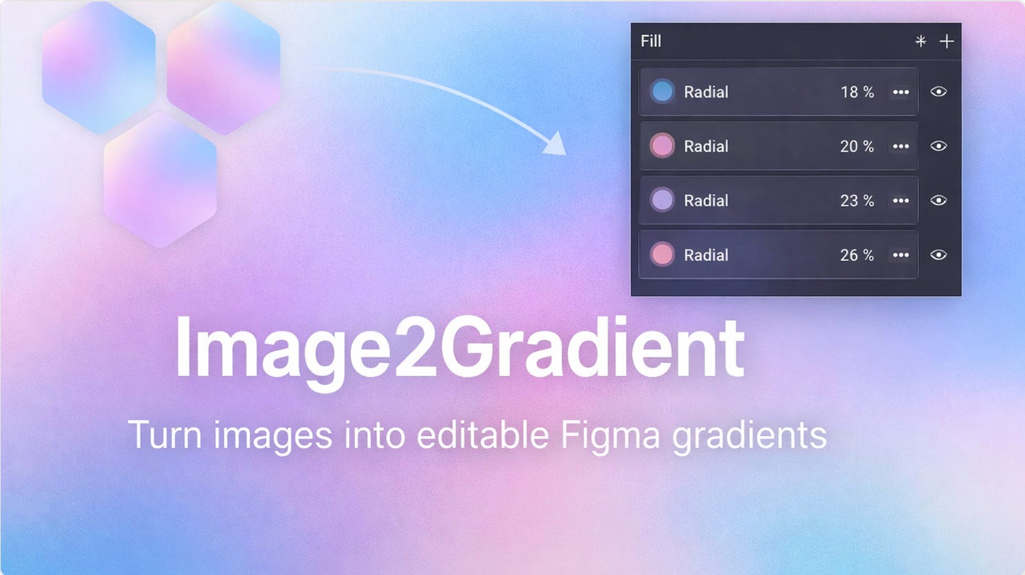 Image2Gradient converts any image and its colors into a Figma-ready gradient. Select a single image layer or a shape that uses an image fill, run the plugin and click ‘Use Selected Image’, adjust layers (3–10), softness and opacity; and hit ‘Apply Gradient’ to either a selected rectangle, or create a new rectangle and apply the layered gradients. The plugin achieves best results with gradient-style images (pastel clouds, soft backgrounds), but will produce an approximation for photos or complex illustrations.